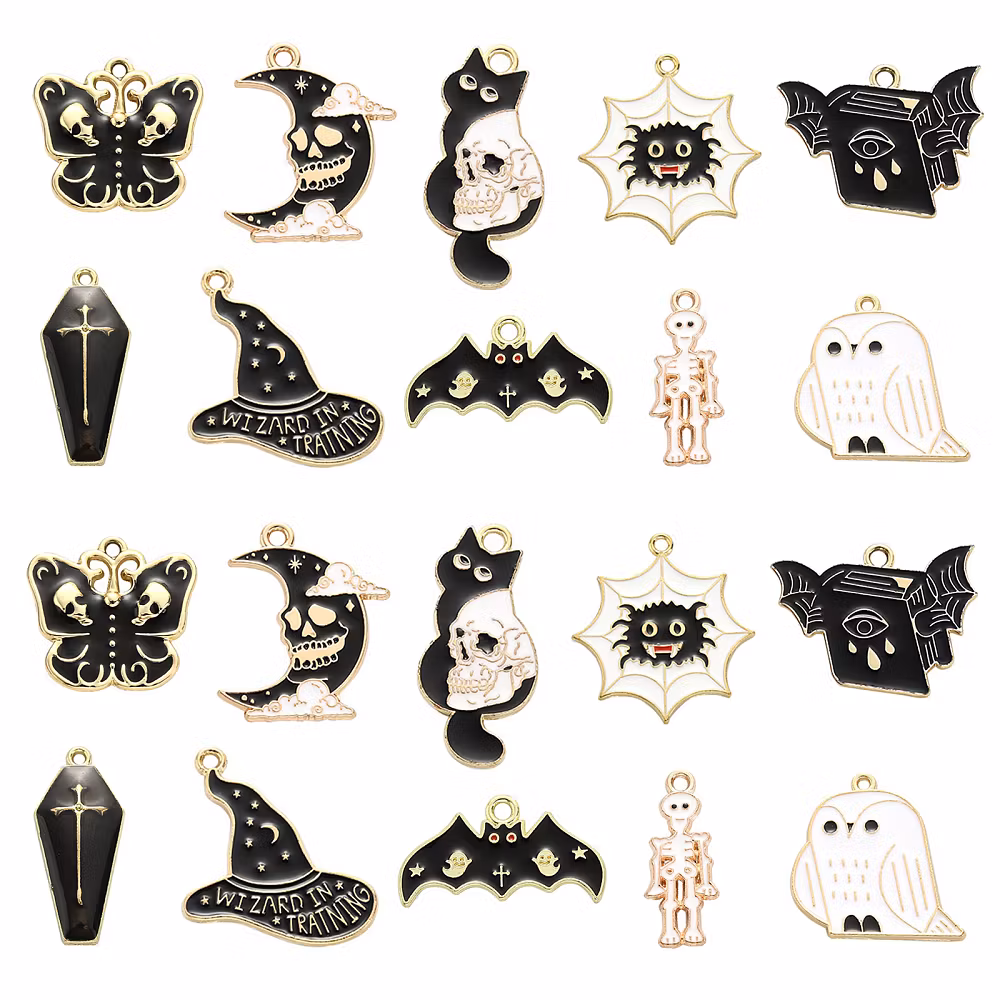 10st. Olika berlocker i guldfärgad metall med emaljerad framsida