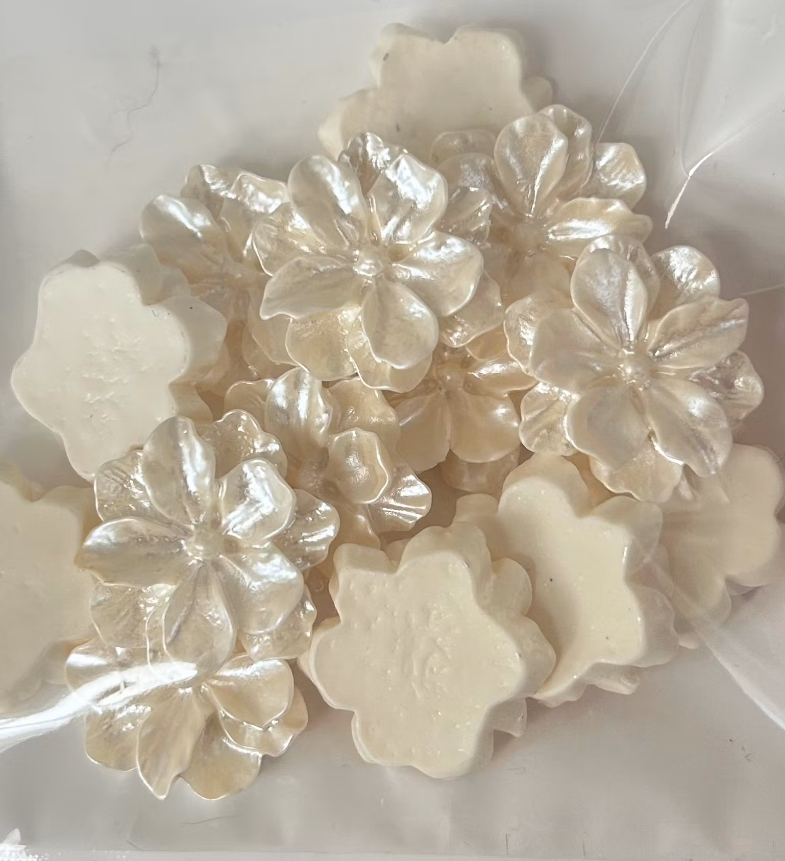 Så fin vit blomma som skimrar i pärlemo. Ca. 30mm