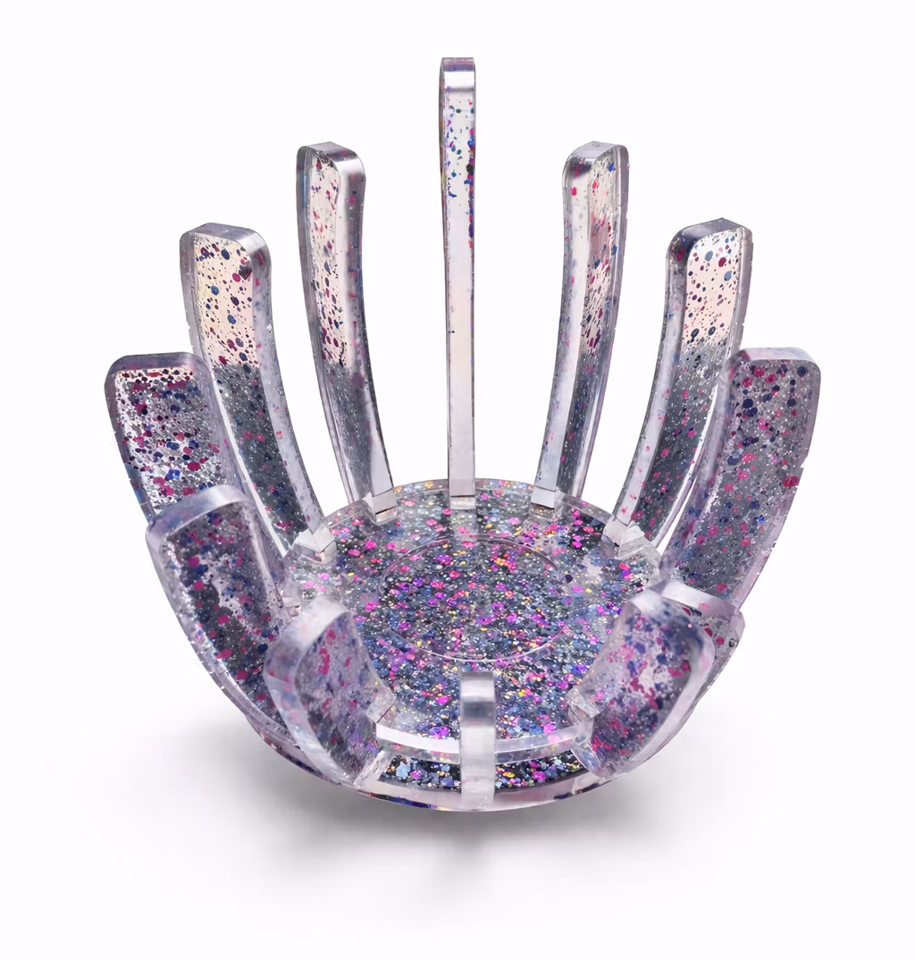 Ljuslykta för värmeljus i klart resin med glitter inuti. Väldigt annorlunda och originell.
