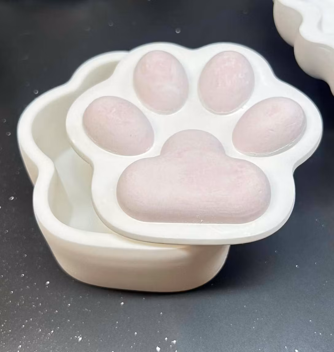 Så läcker skål av ett hårt porslinsiknande gips. 8x9,5 cm. Skålen behandlas med ett vax som står emot avtorkning med våt trasa.
