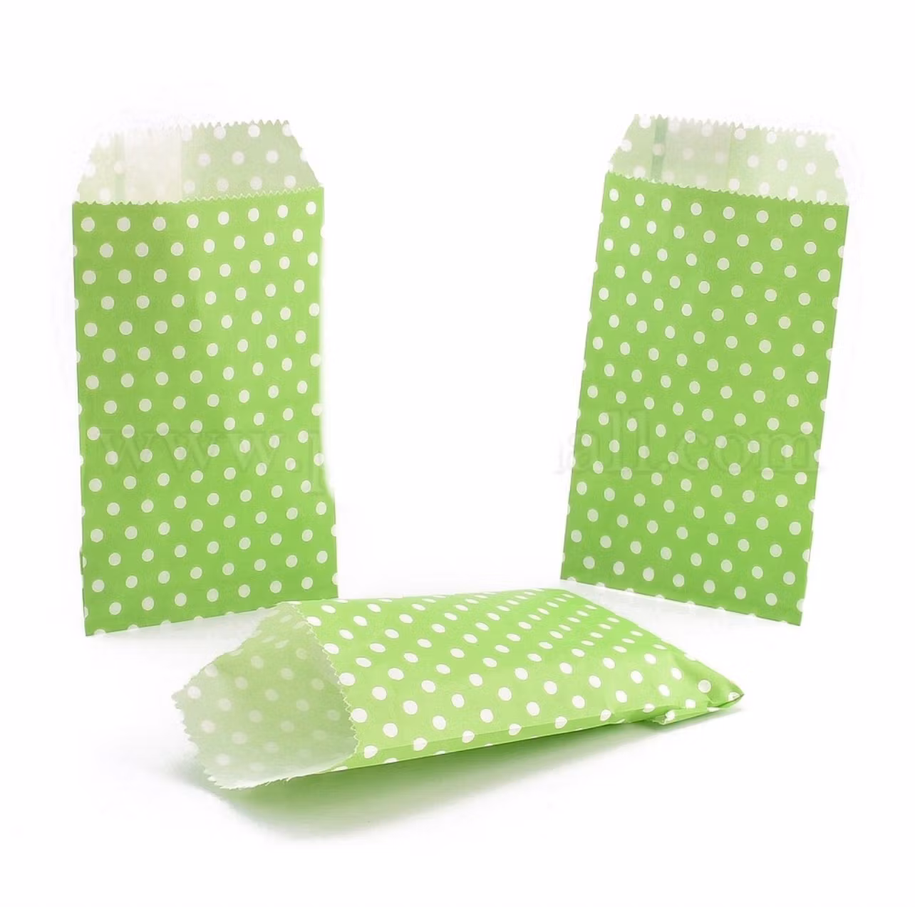 Kraft Paper Bags, No Handles, Storage Bags, White Polka Dot Pattern, Wedding Party Birthday Gift Bag, Pale Green, 15x8.3x0.02cm