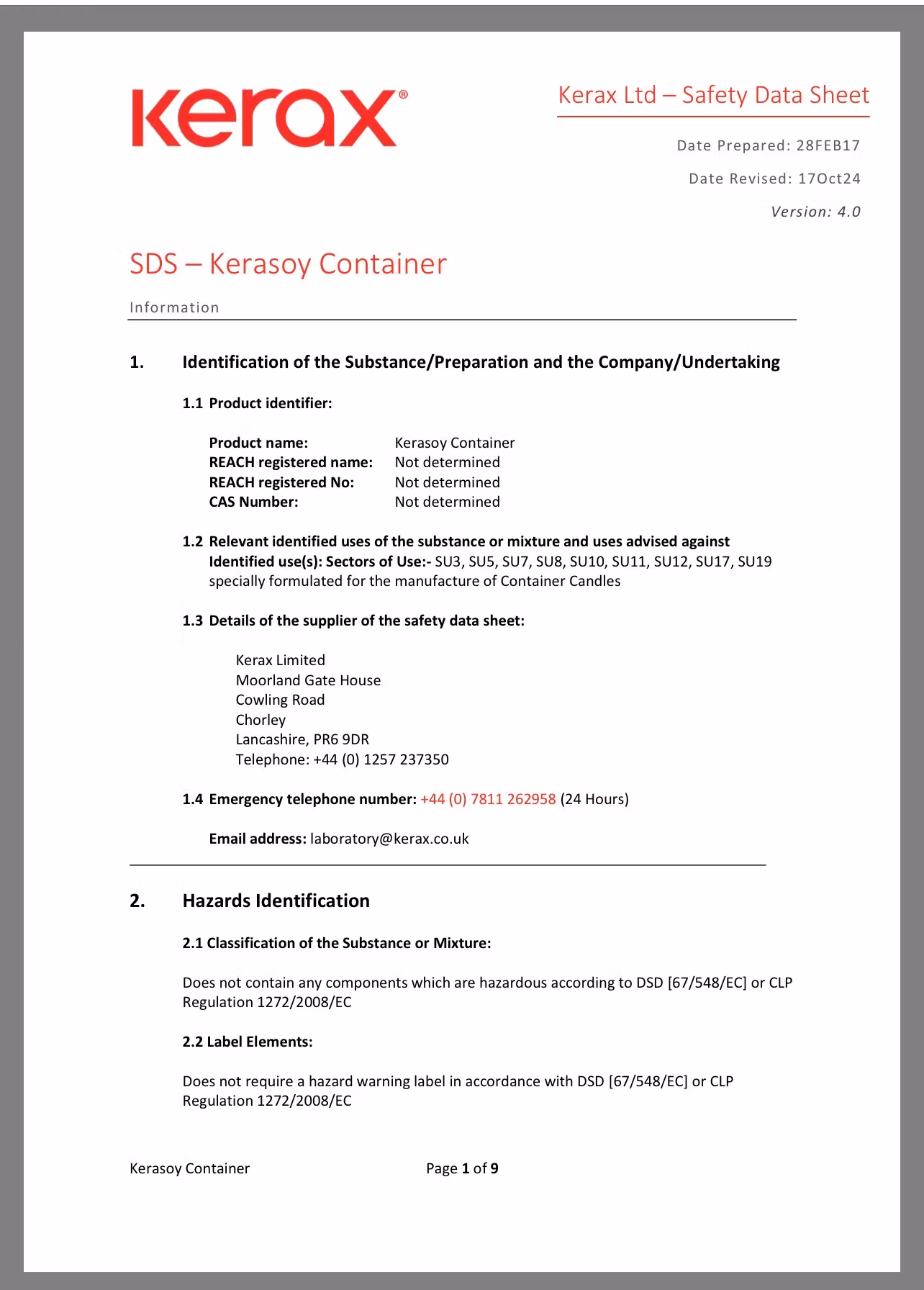 KeraSoy 4130 ljusglasvax är en idealisk sojavax för ljusglas och andra behållare. Den ger utmärkt vidhäftning till ljusglaset tack vare dess minimala krympning. Sojavaxen består av endast naturliga ingredienser som gör att vaxen presterar perfekt utan att ljusmakaren behöver tillsätta något till blandningen, förutom eventuell färg och doft.