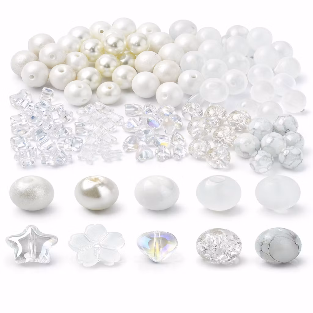 Glasmix baking painted 20 pärlor/modell i vitt. Så vackra. Kommer i praktisk låda.