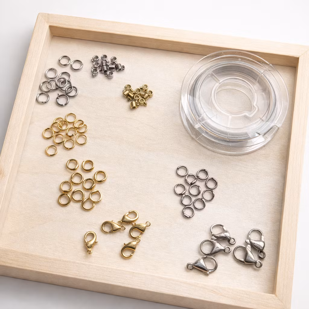 Nybörjarkit för armband10m Tigertail10m stretchtråd10st lollipop silver, 10st lollipop guld10st specialring guld, 10st specialring silver10st jumprings 6mm, 10s