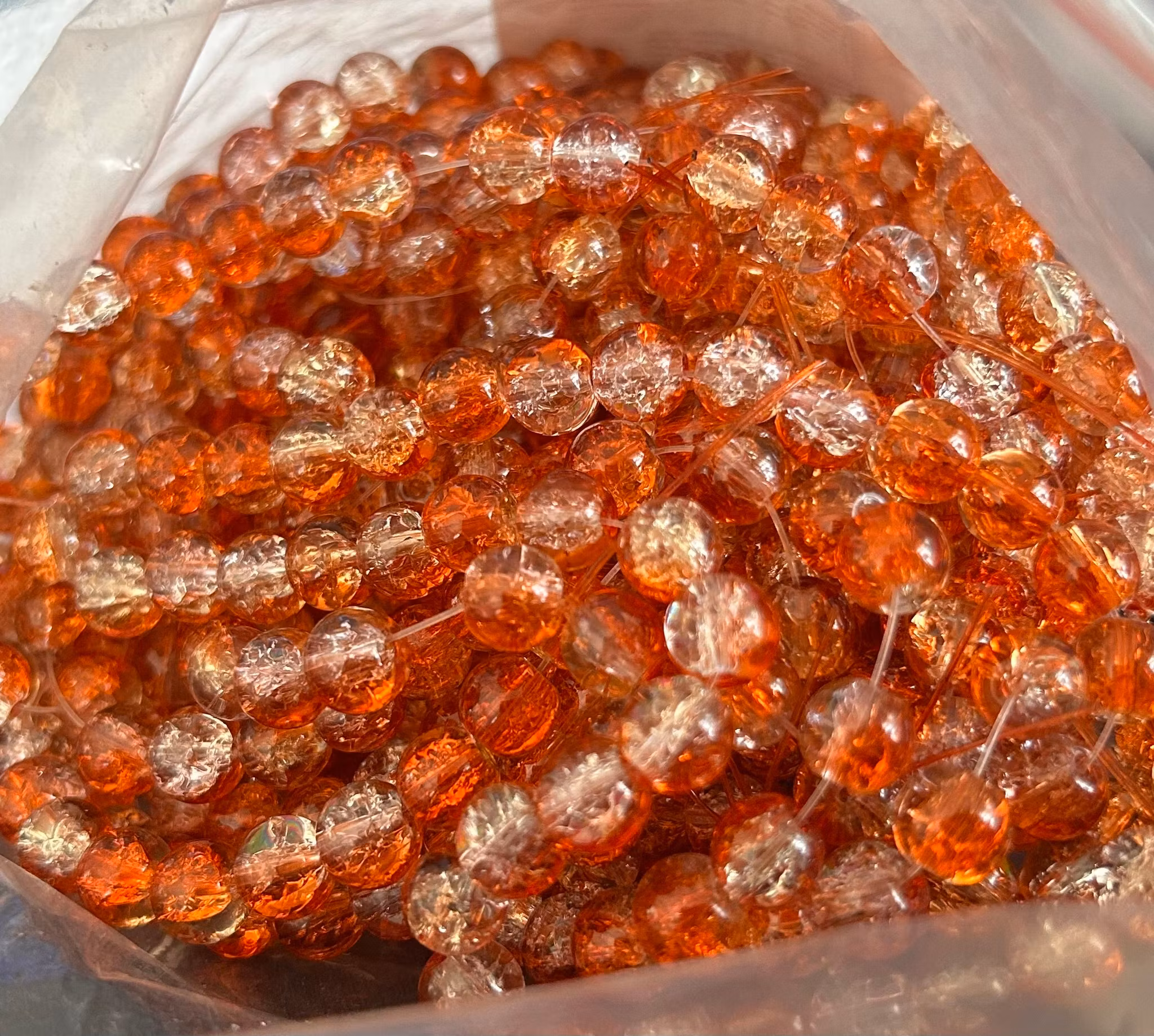 En vacker krackelerad pärla i två toner orange med över 100 Pärlorper sträng