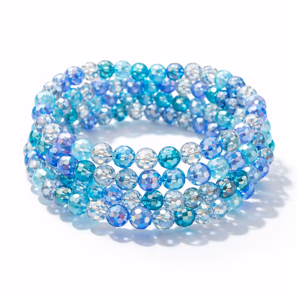 En vacker blandning av blåa toner i en fasetterad rund pärla ca 50 pärlor per sträng