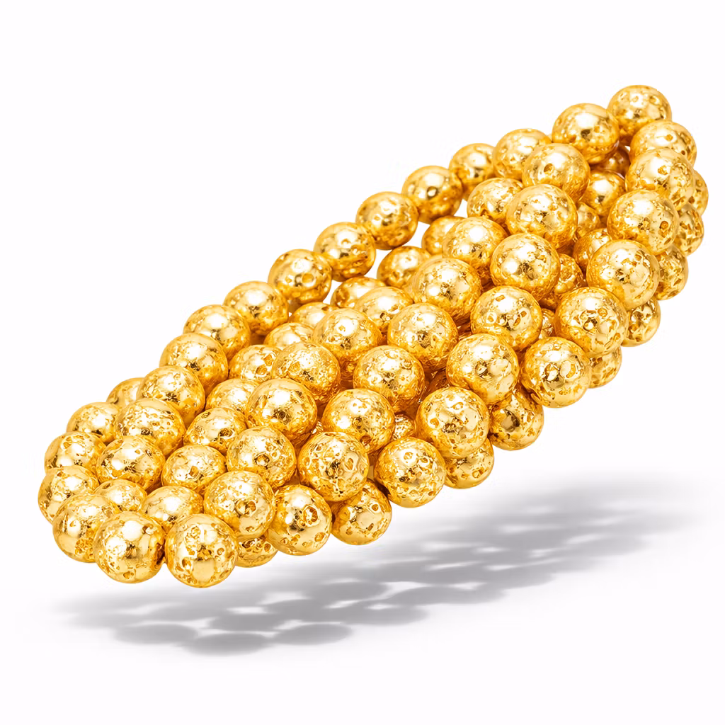 Fina Lavapärlor i guldplätering, fin att ha som effektpärla i armband 6mm, 61st per sträng