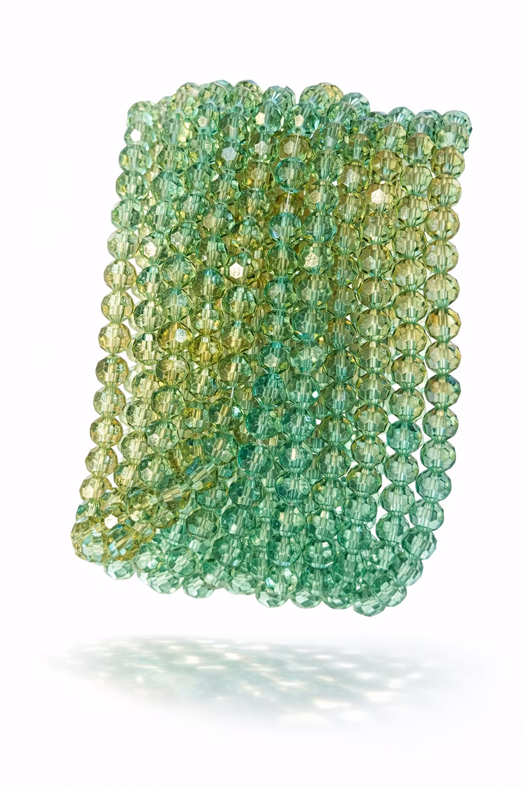 Fin grön fasetterad pärla som i varje sträng består av fler nyanser i grönt. Ca.70pärlor på en sträng