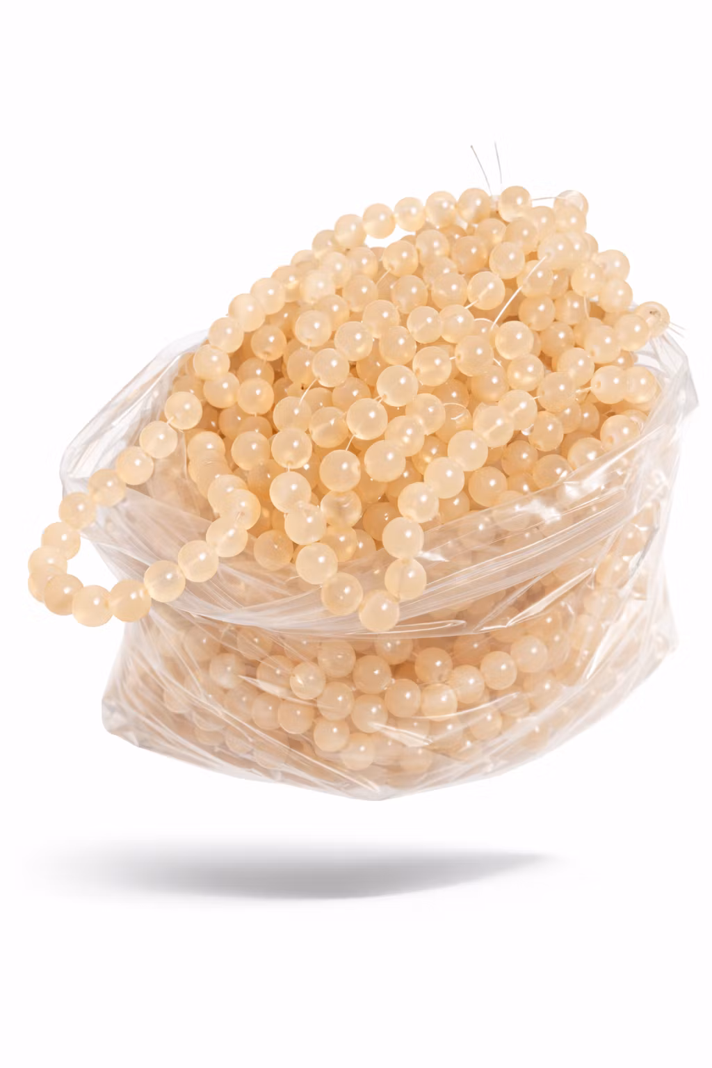 En vacker jade imitation i ljus peach ca 104 pärlor per sträng.