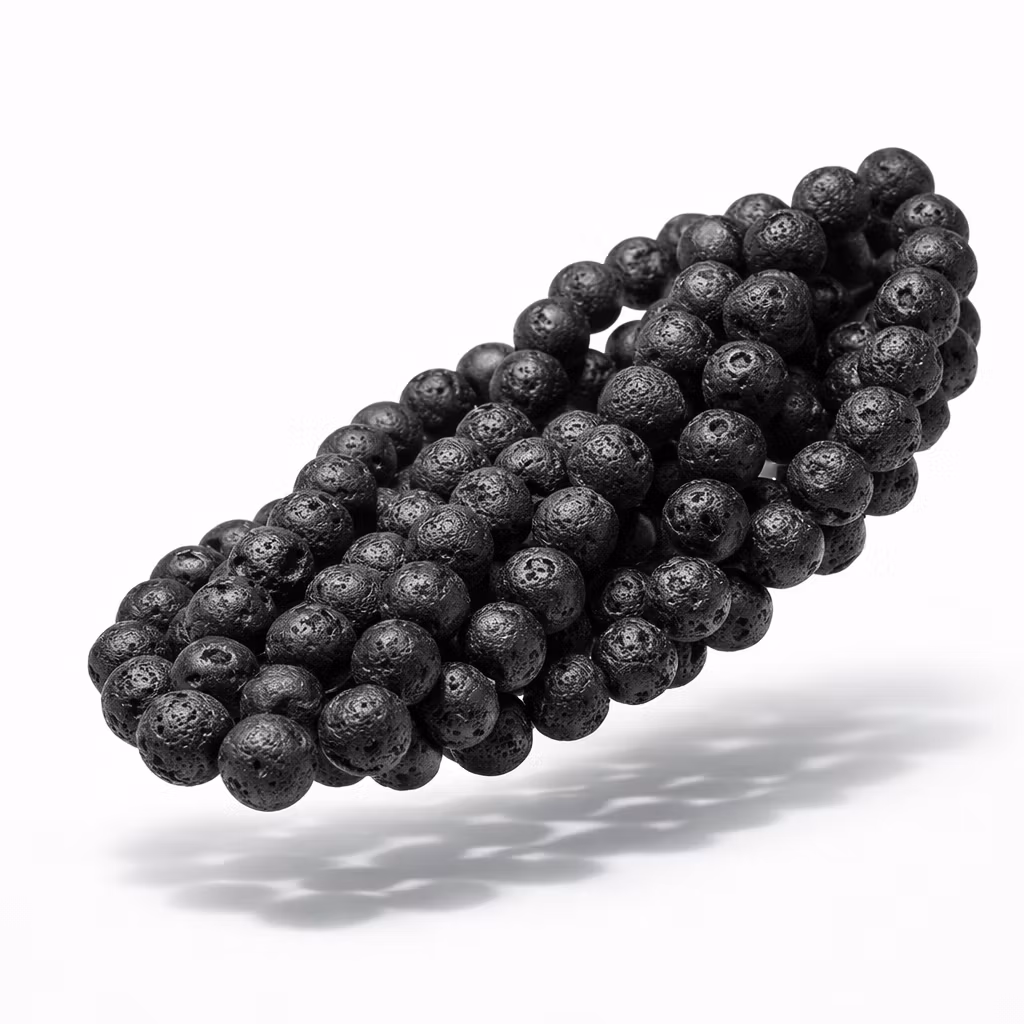 Svarta lavapärlor 8mm. 46-48 pärlor per sträng