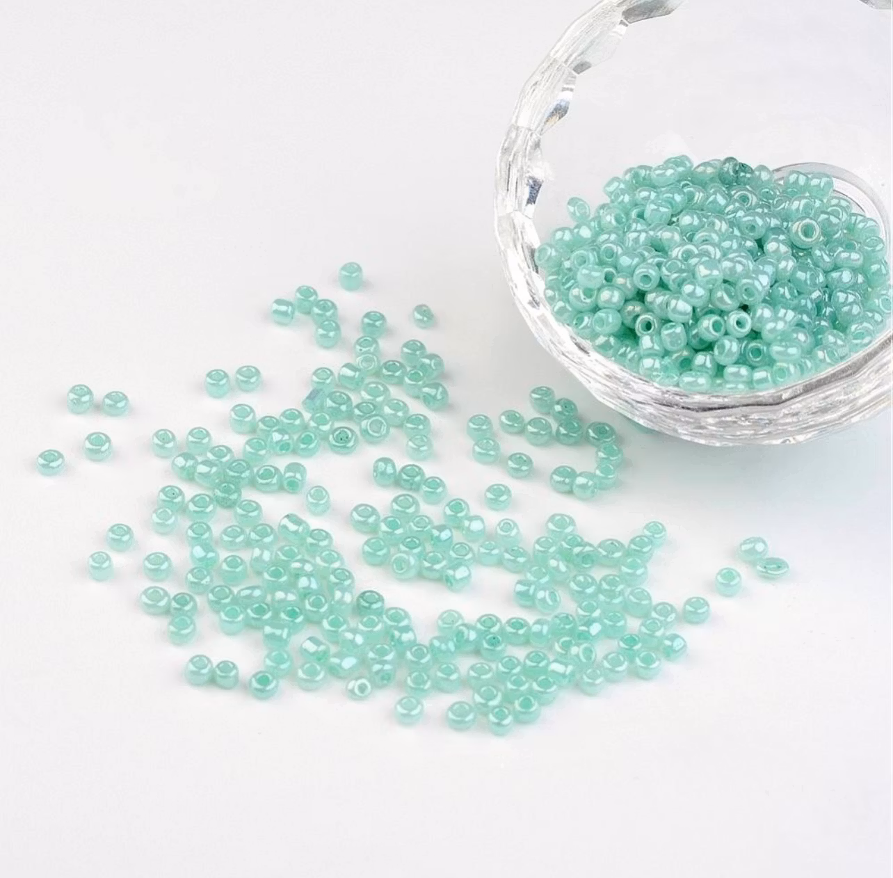 8/0 Ceylon runda glaspärlor, aqua, storlek: ca 3 mm i diameter, hål: 1 mm, ca 1101 st/50 g