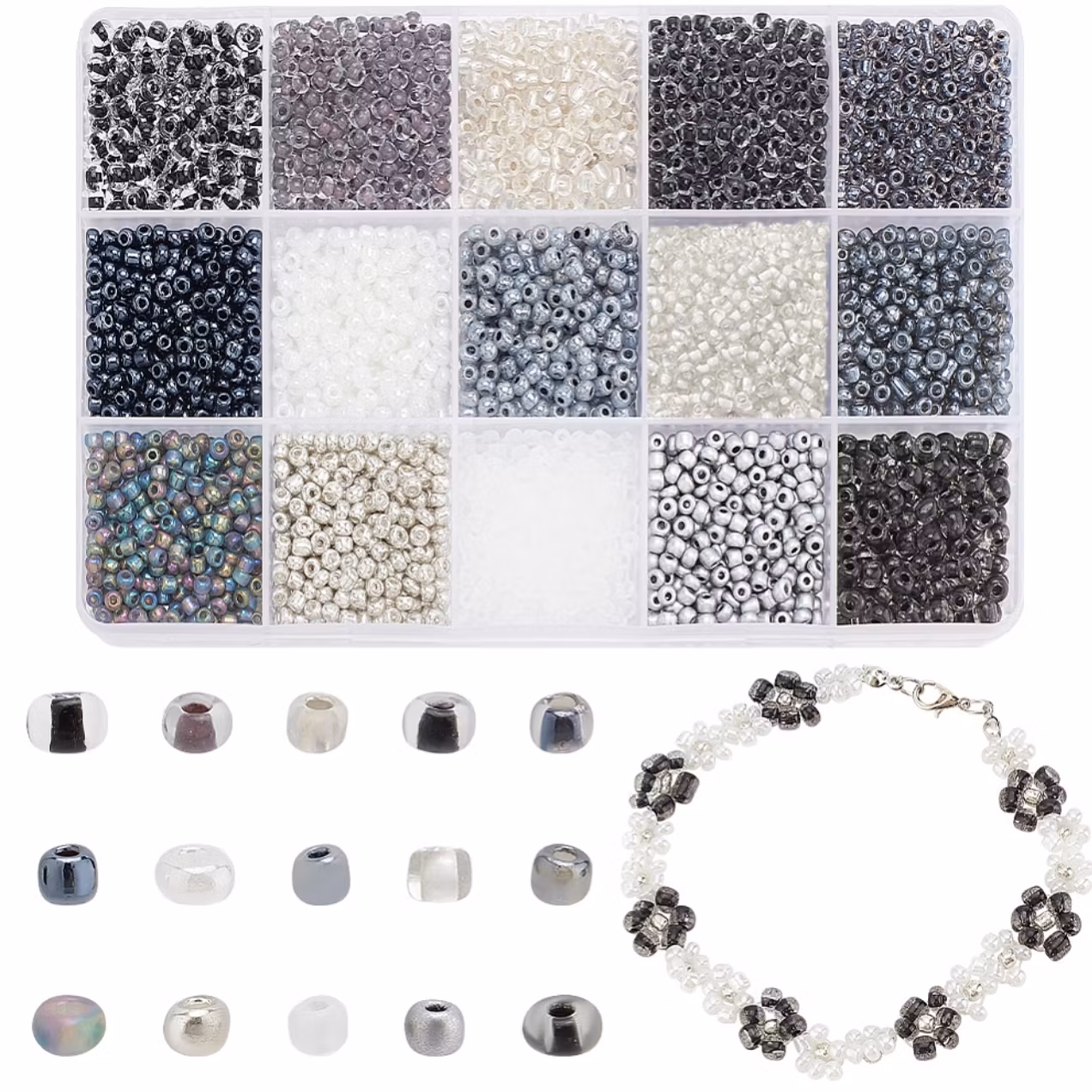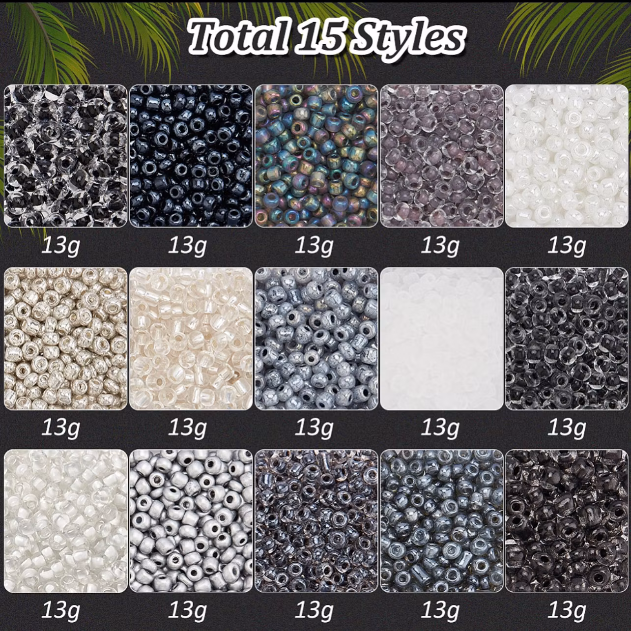En hel box!195G 15 Styles Glas Seed Beads, 3mm, Hole: 0.8~1mm,
