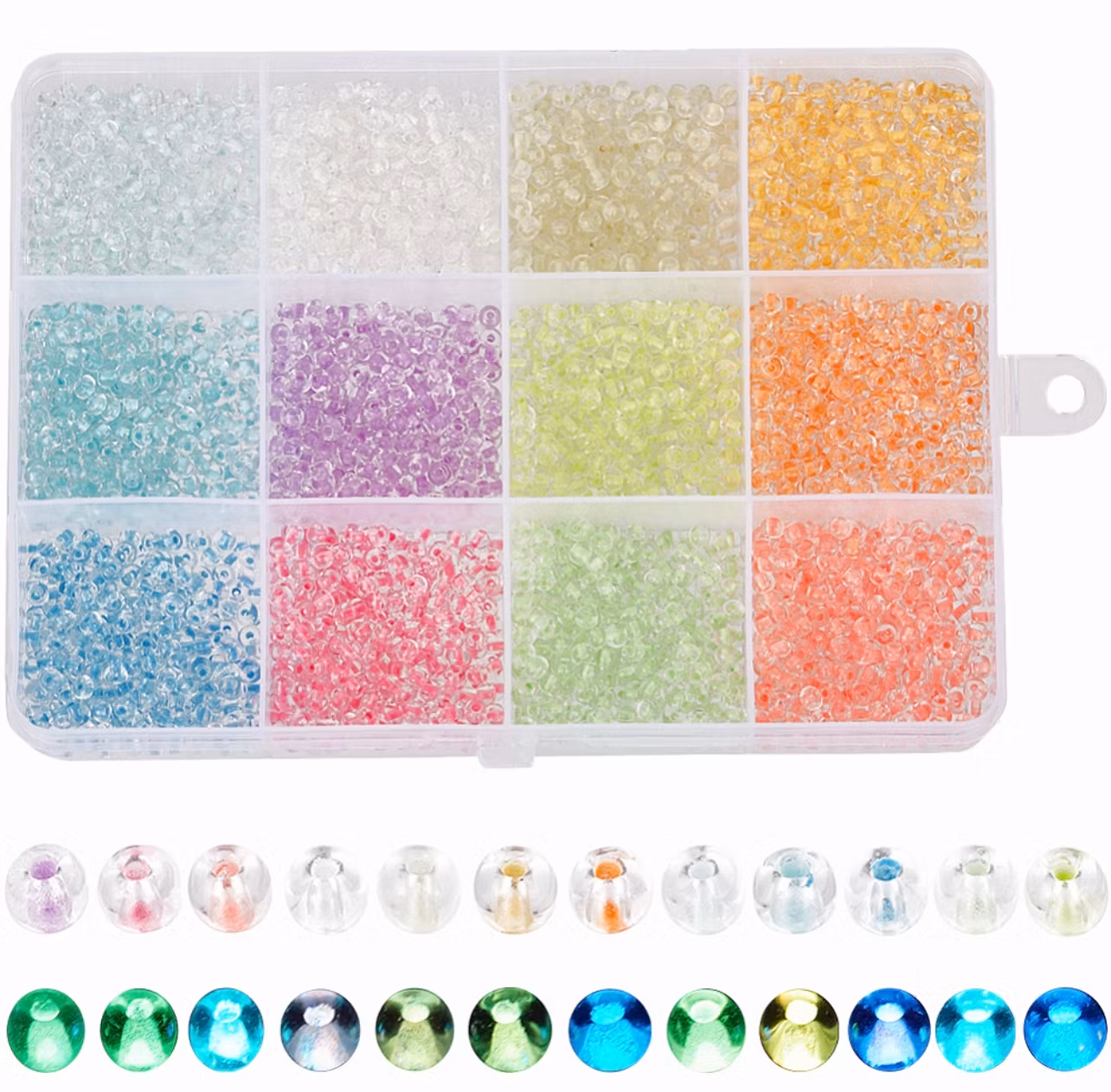 SUNNYCLUE 1 Box 12 färger 3mm lyser i mörker, Glas SeedBeads.