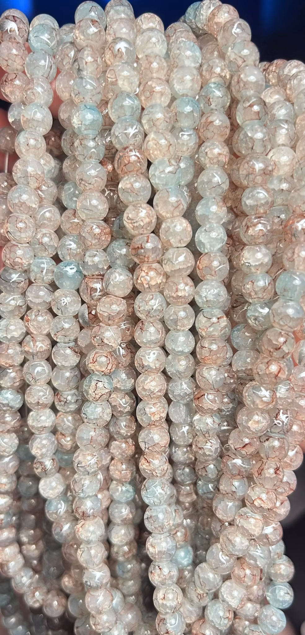 Drawbench krackelerade glaspärlor, 109-113 st/ sträng light cyan, 8x7mm