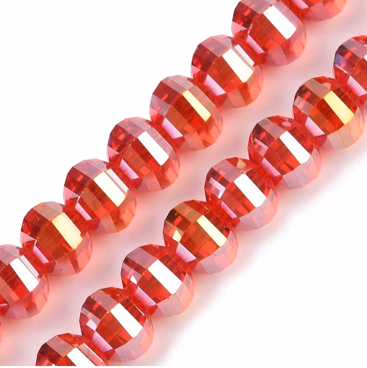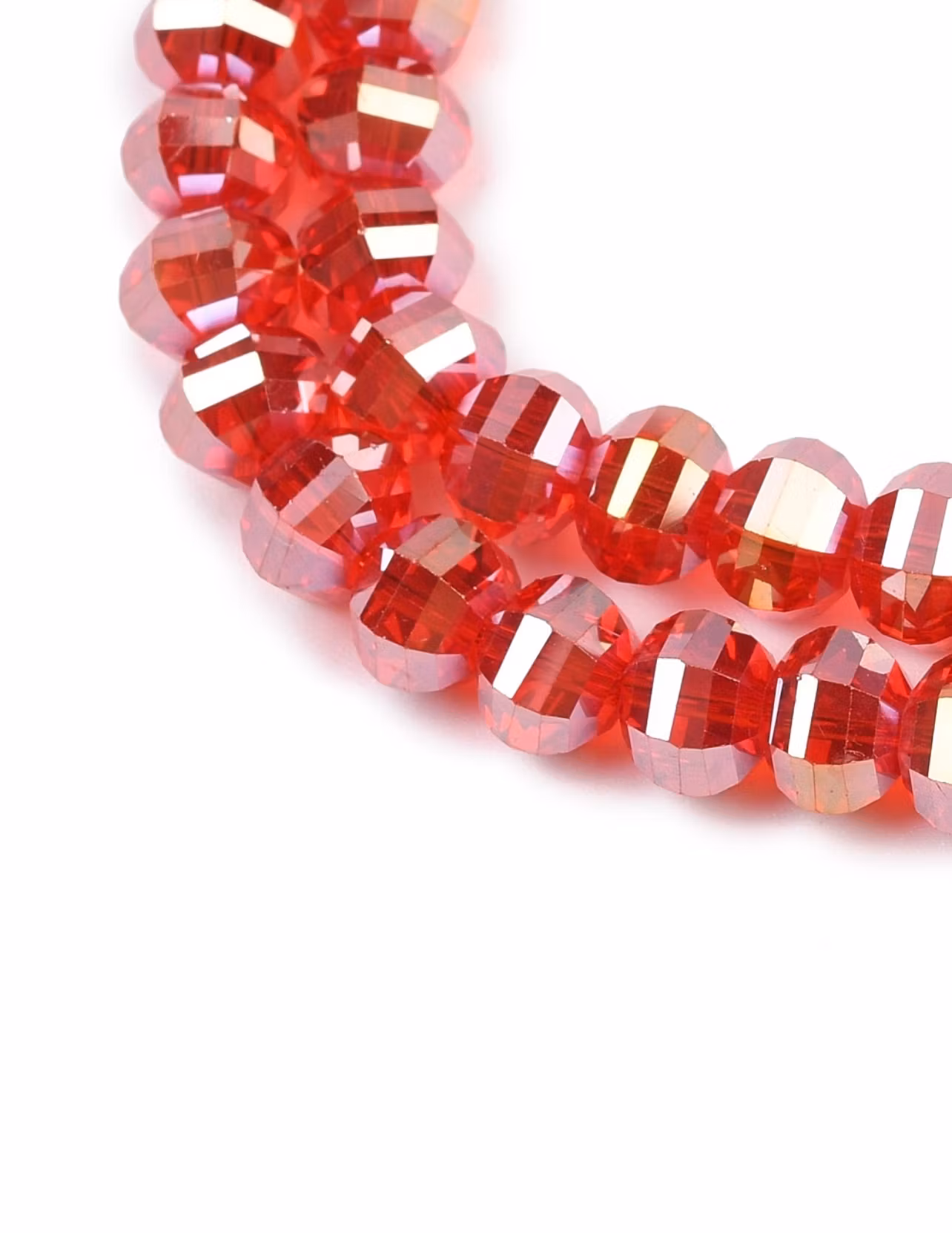Electroplate Transparent Glas pärla Strands, fasetterad, AB Röd, 8x6mm, Hål: 1.2mm, about 78~81/sträng