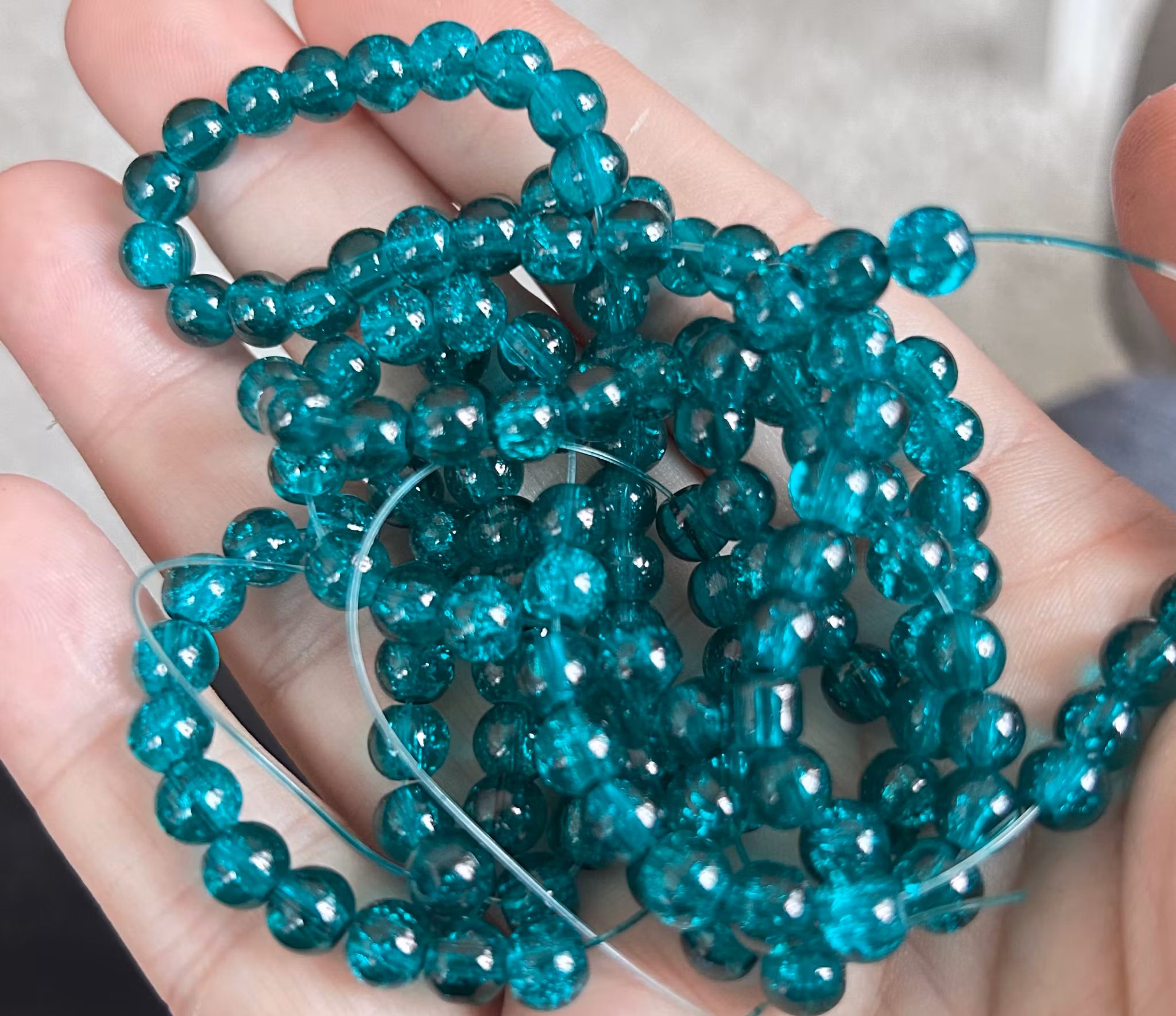 Krackelerad glaspärla i Sea Green, 6mm, Hole: 1.3~1.6mm, 133st/sträng