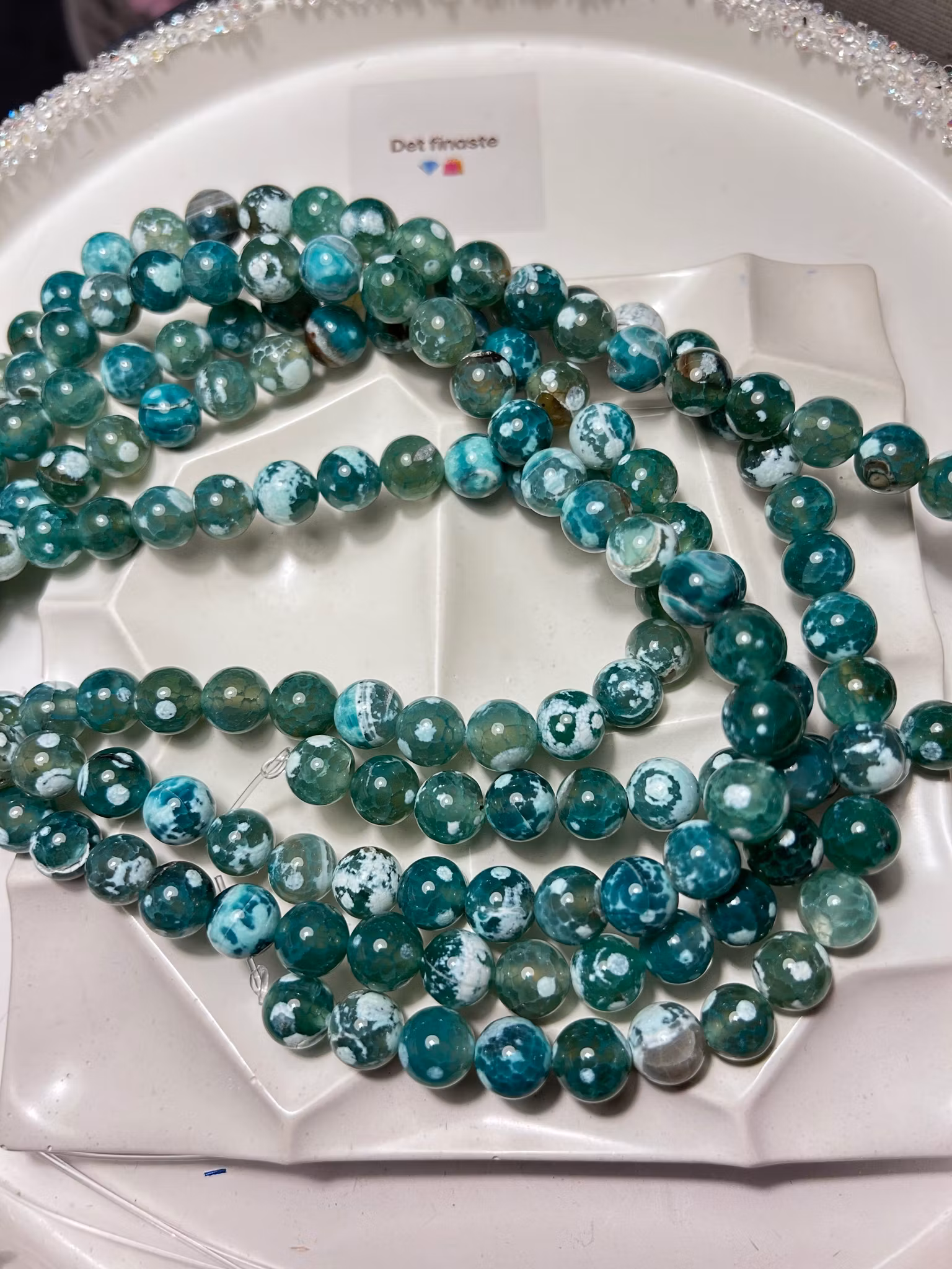 Dyed Natural Fire Crackle Agate Beads Strands, Round, Light Sea Green, 10~10.5mm, Hole: 1.2mm, about 36pcs/strand,