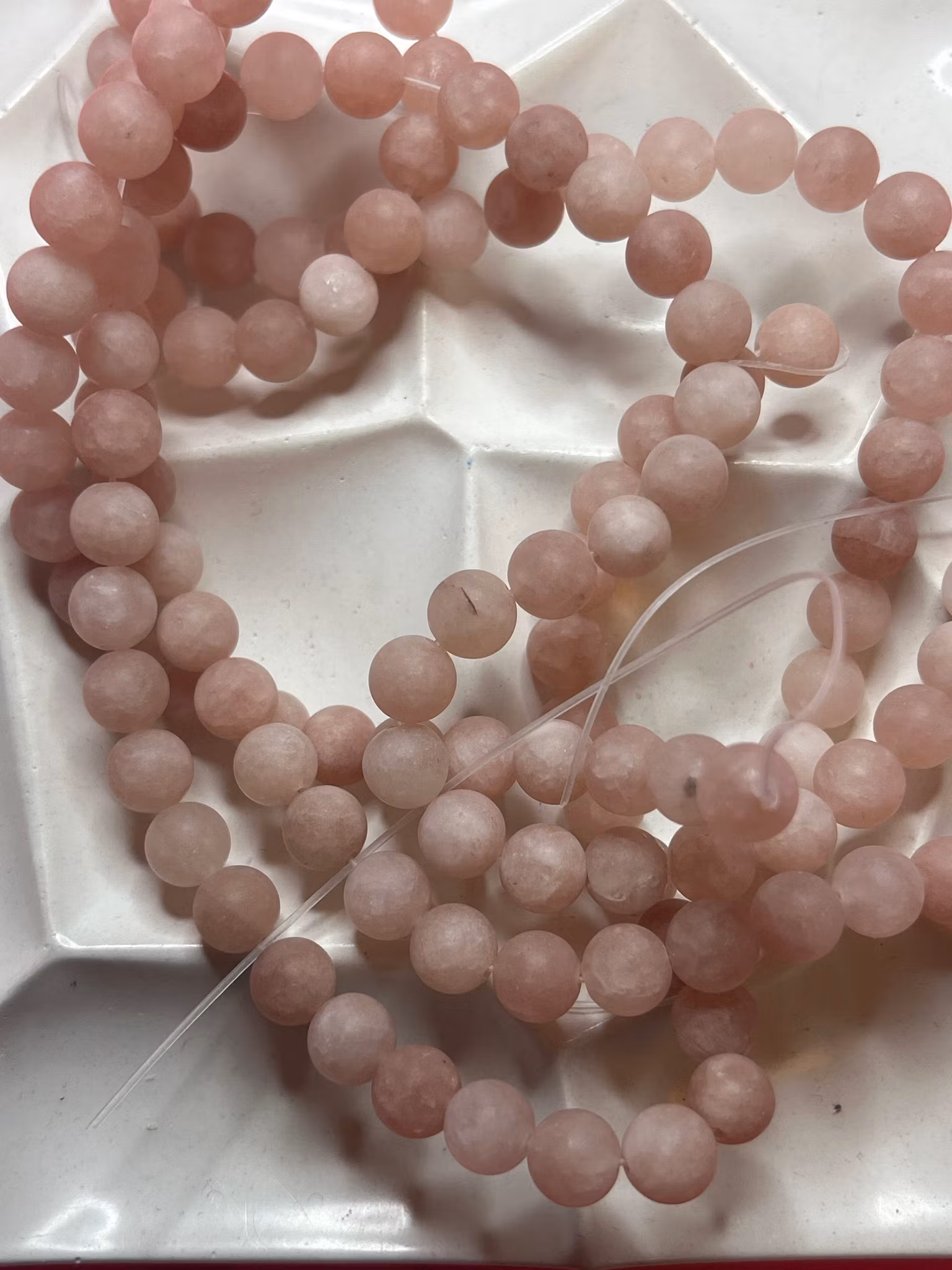 Natural White Jade Bead Strands, Dyed, Frosted, Round, Pink, 8~9mm, Hole: 1mm, about 46~48pcs/strand