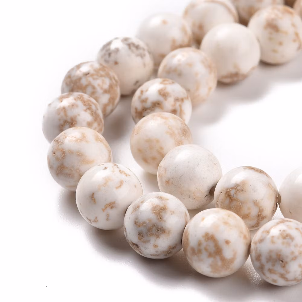 Natural Magnesite Beads , ca 48 pärlor på varje strängNaturlig Skönhet: Magnesit är känd för sina mjuka, jordnära toner som lätt kan kombineras med andra materi