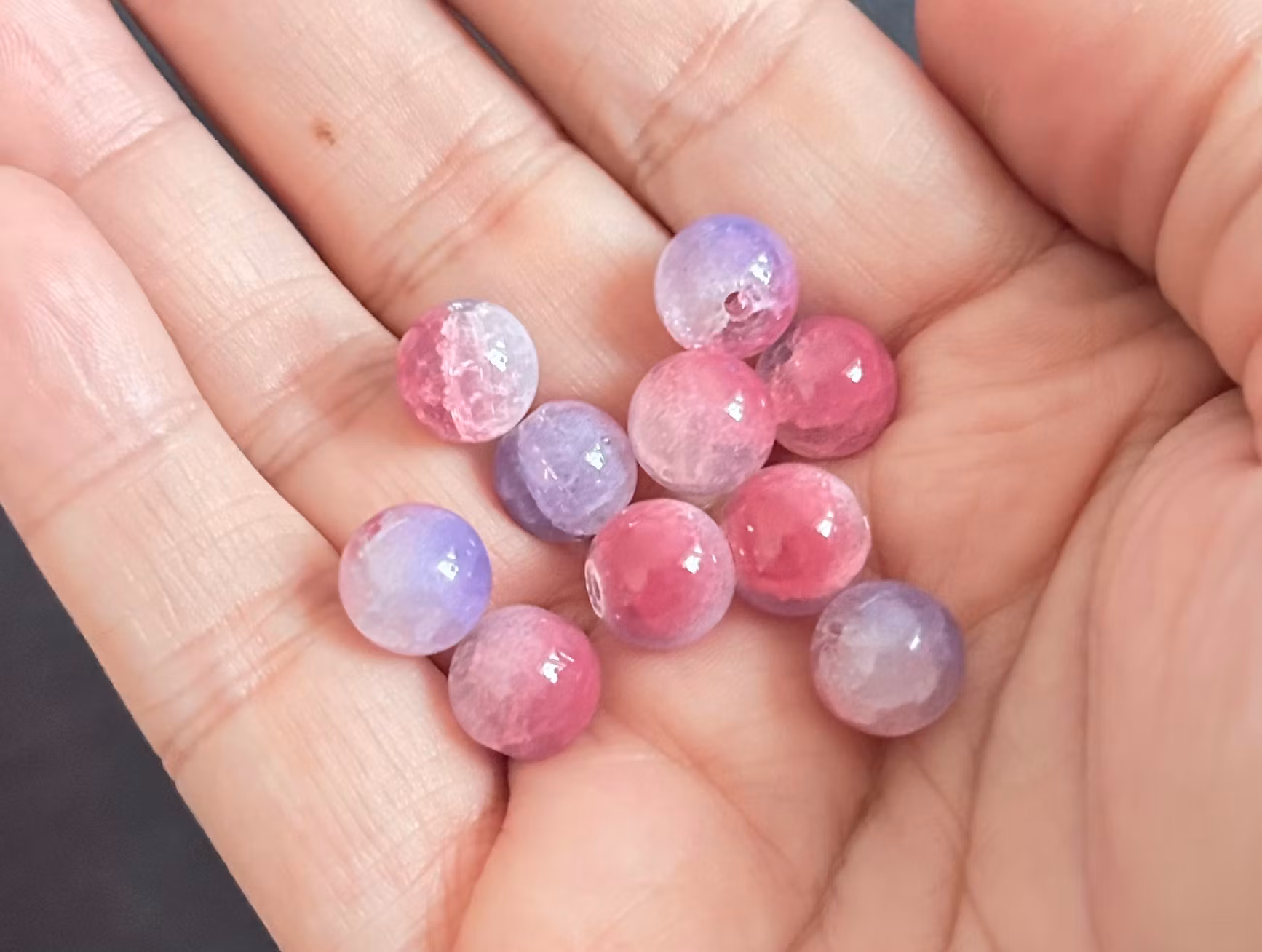 Så fina pärlor i krackelerat glas med glitter i och massa glans. Snygga i alla slags smycken.