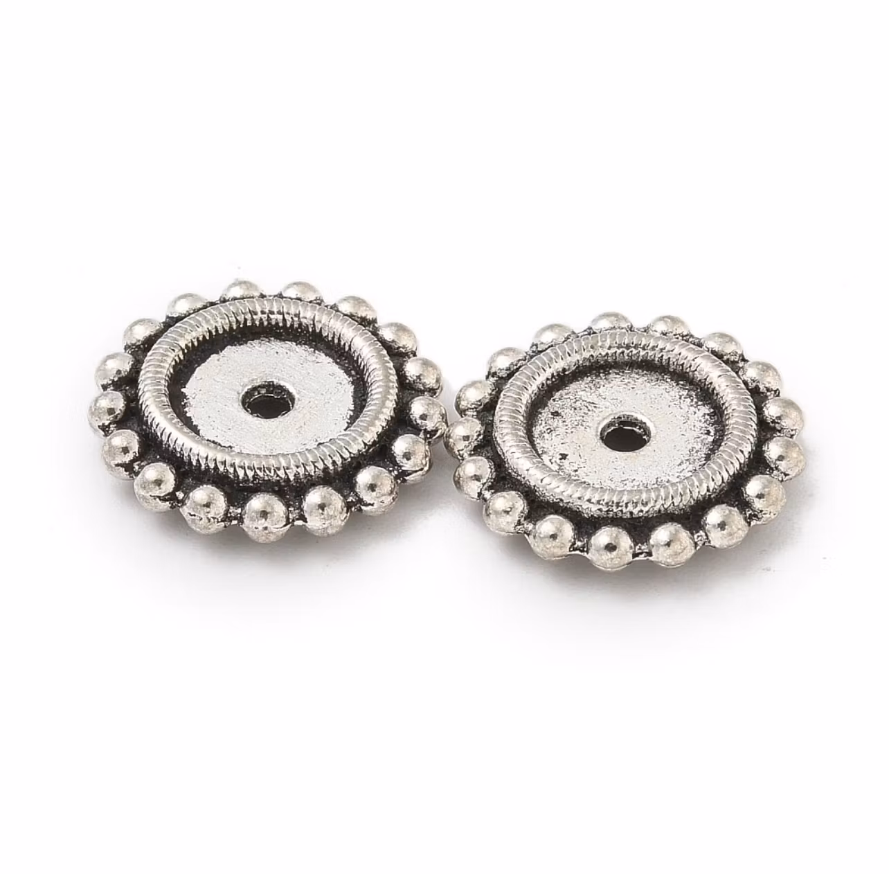 Mellandel i metall, kadmiumfria och blyfria, ej nickelfria. platta runda, antiksilver, 14,5x3mm, hål: 1,4mmSäljes styckvis