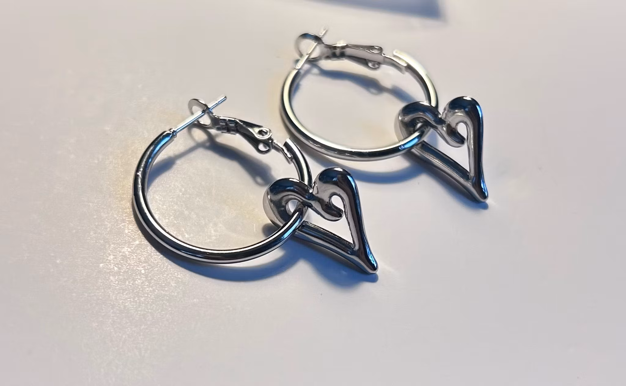 Non-Tarnish 304 Stainless Steel Dangle Hoop Earrings, Heart, Stainless Steel Color, 40x15mm