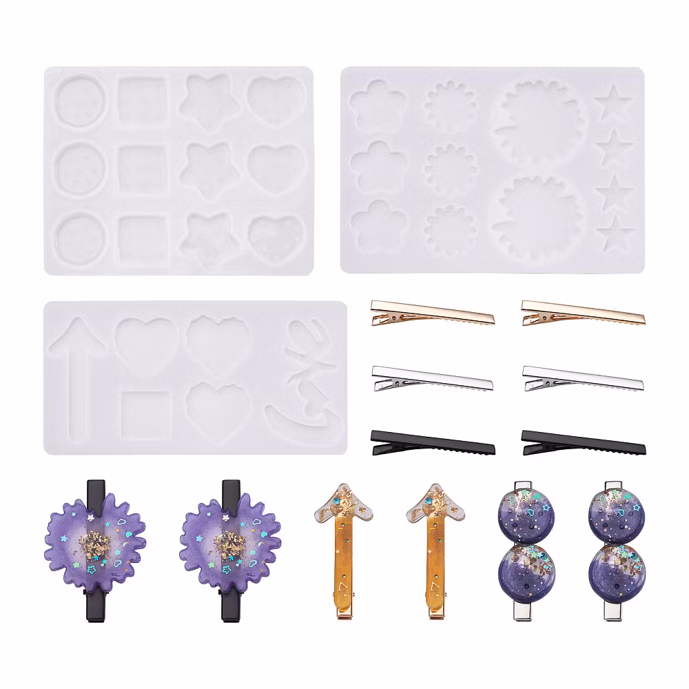 Ett stort resandet med 3 olika brickor med formar, 3 olika färger med klämmor och 10st av varje färg