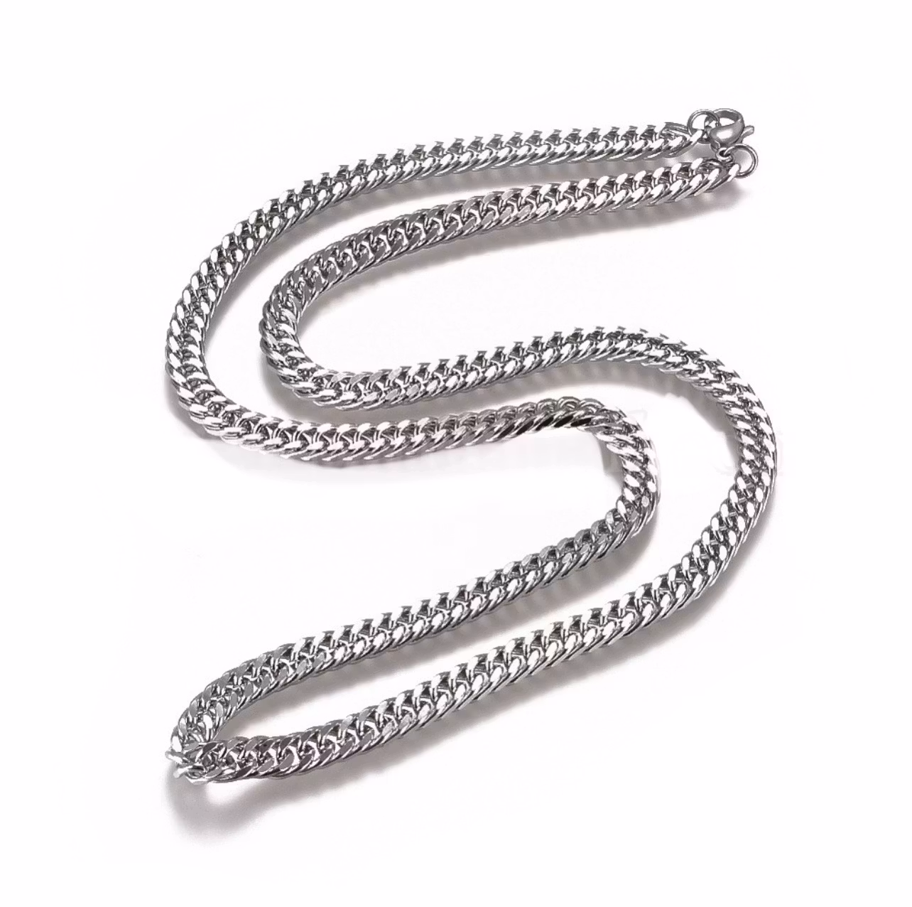 Non-Tarnish Men's Cuban Link Chain Necklaces, Fashionable 201 Stainless Steel Necklaces, with Lobster Claw Clasps, Stainless Steel Color, (60.5cm), 6x3mm