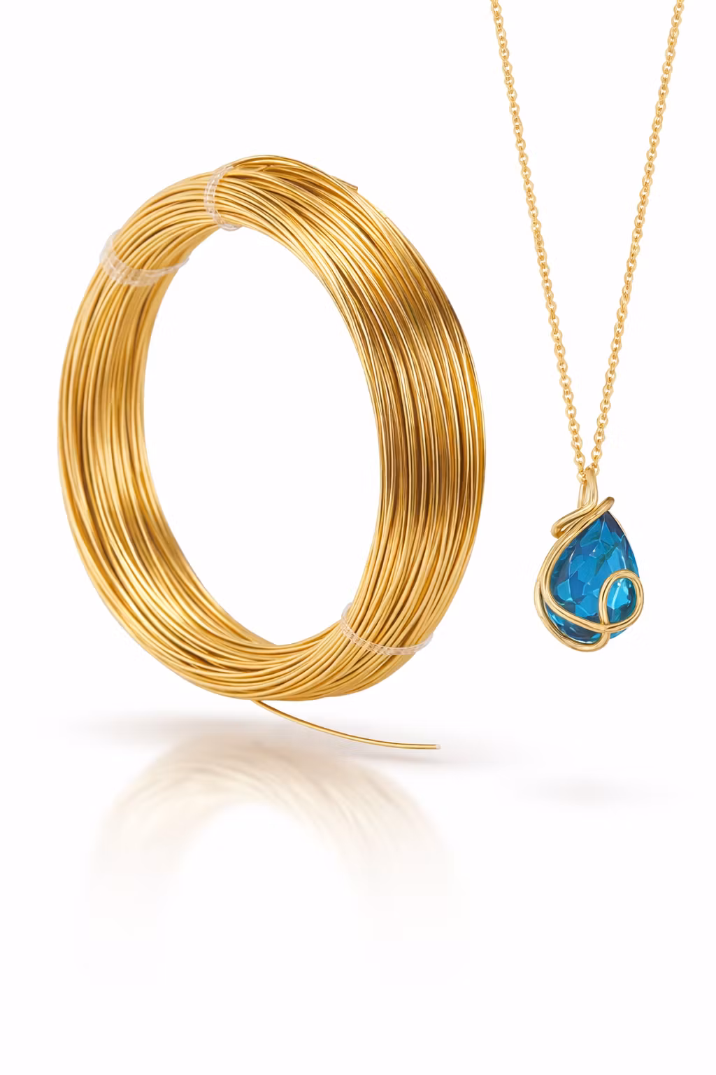 Aluminum vajer, Round, guld, 18 Gauge, 1.0mm, (50m) till att göra ringar, pärlburar och annan dekoration