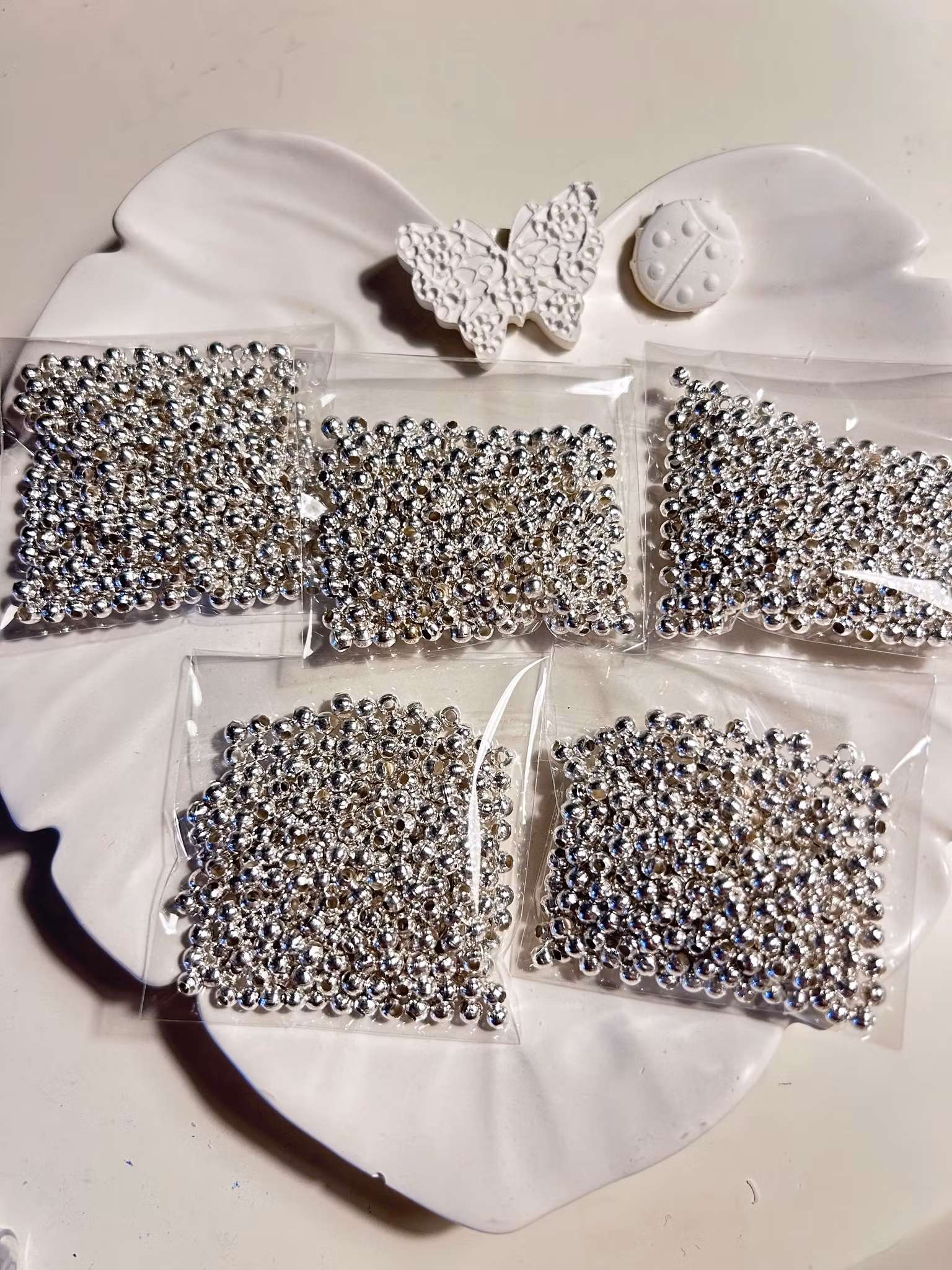 3mm. Silverfärgade kulor till smycken. Priset avser 1st. Påse.