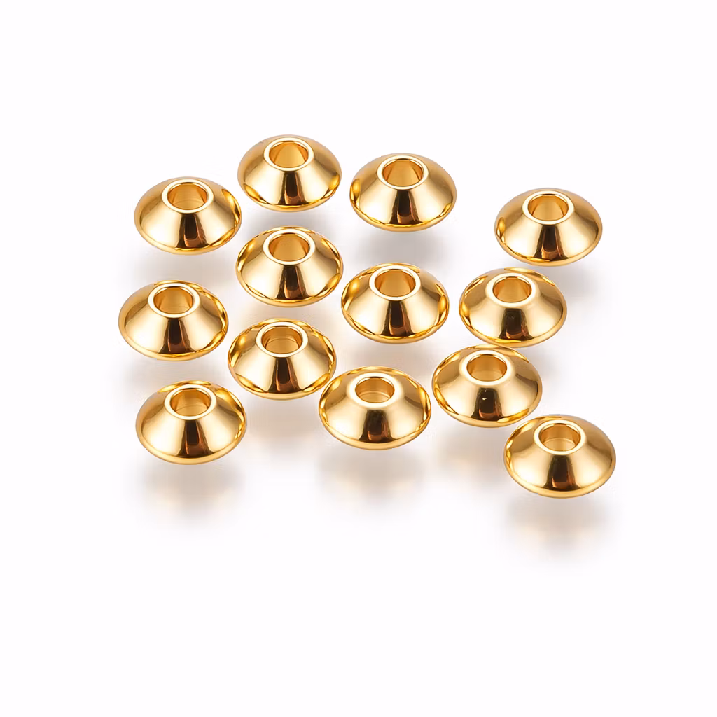20st. Rostfria spacer rondeller 6x3 mm. Äkta 24 k tunn guldplätering , hål 1,8 mm