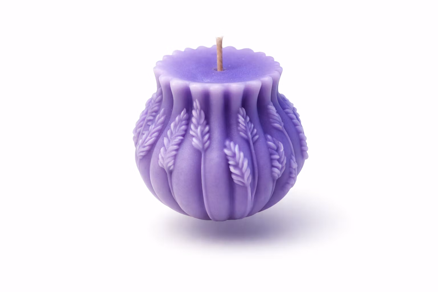 Ett Vackert ljus med lavendelmönster, färg och doft. 8,2x6,6cm. Doftolja finns på sidan med certifikat och all info.
